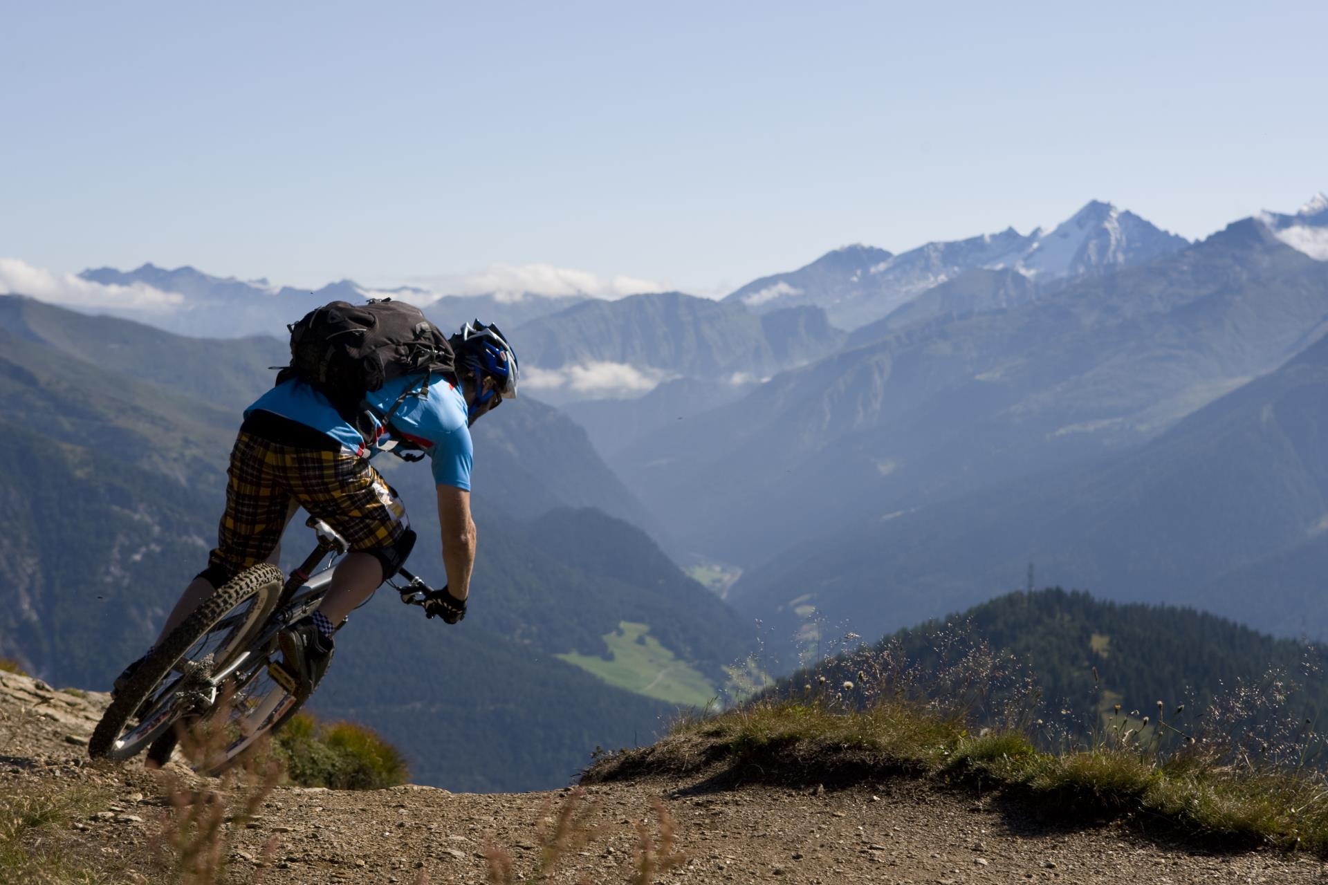 Oberhalb der Waldgrenze, wenn der Pass schon in greifbarer Nähe scheint, müssen selbst äußerst fitte Biker nochmal ordentlich in die Pedale treten – oder absteigen und schieben und dafür länger die Landschaft genießen. Was dann kommt, entschädigt jedoch für jede Beschwerlichkeit: Ein recht sanfter, flowiger Trail, der vom Pfunderer Joch rund 1.000 Höhenmeter nach unten führt.