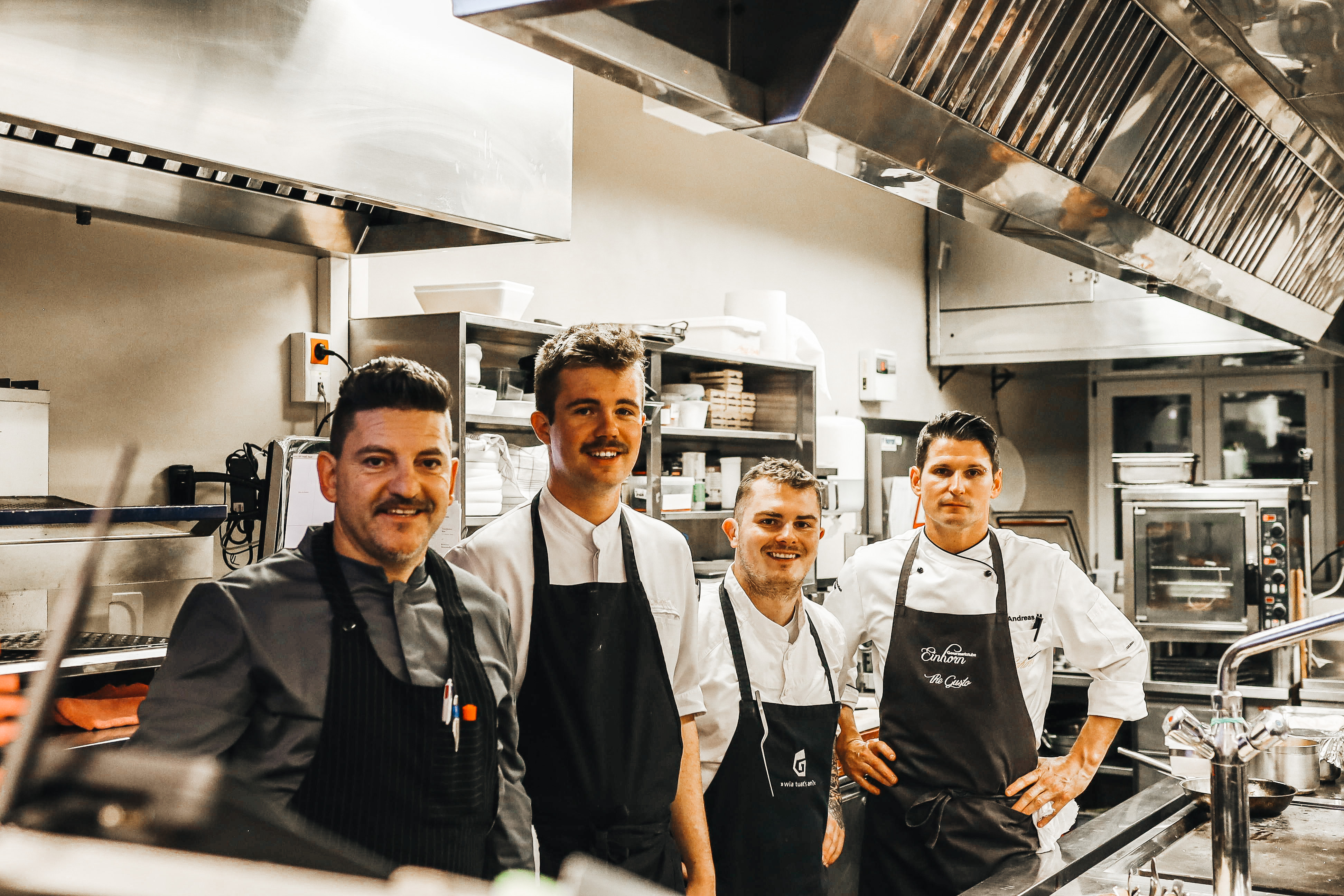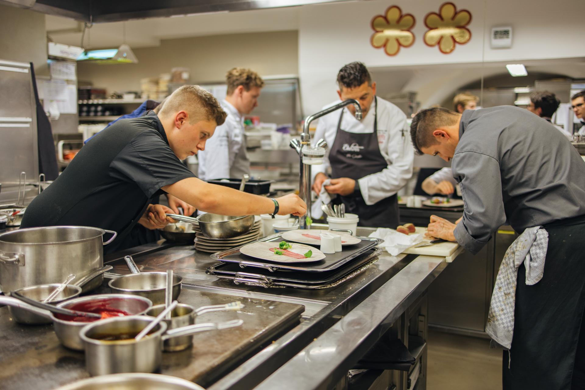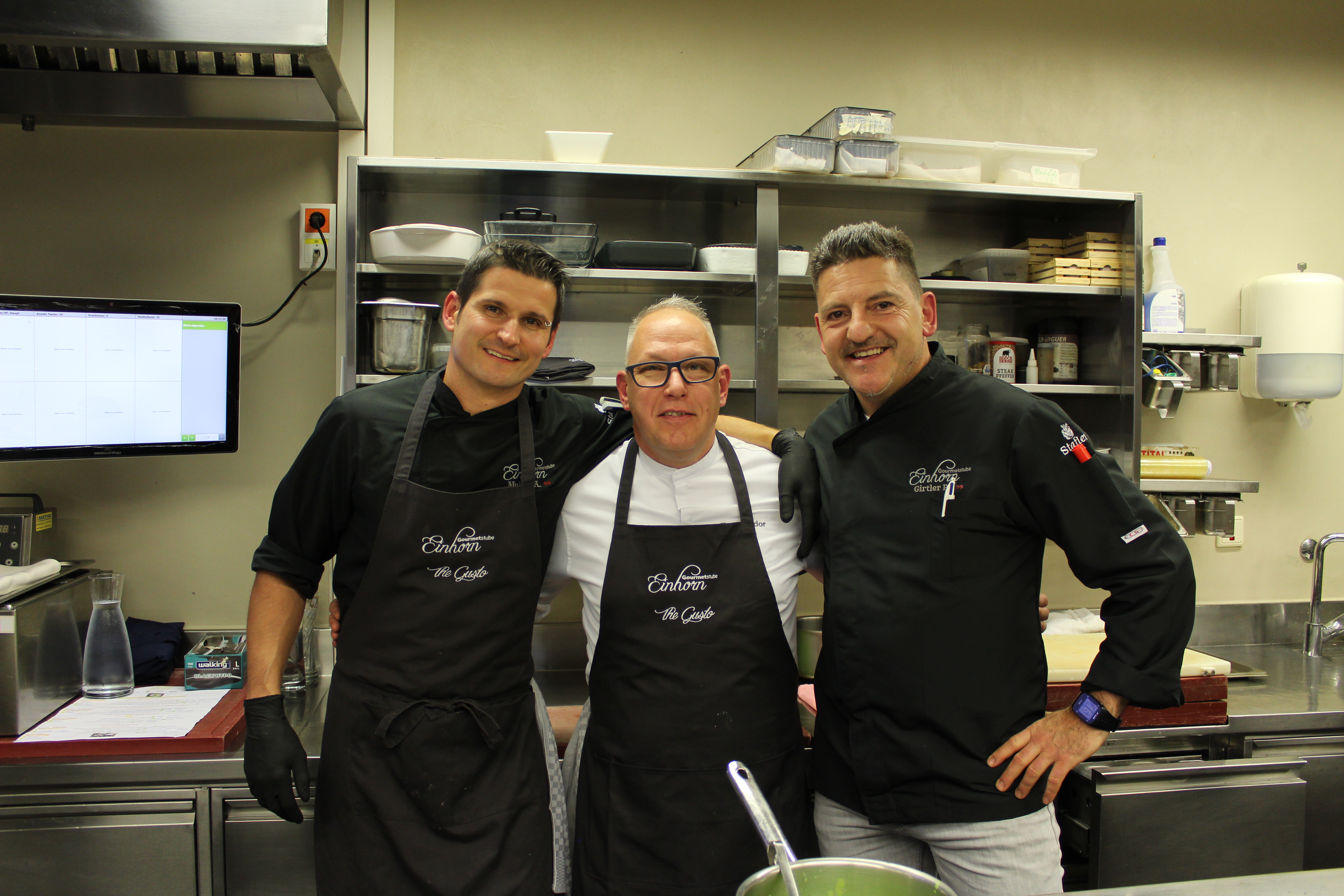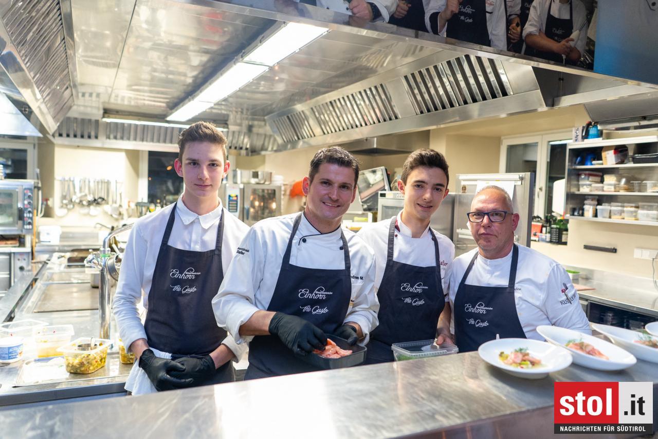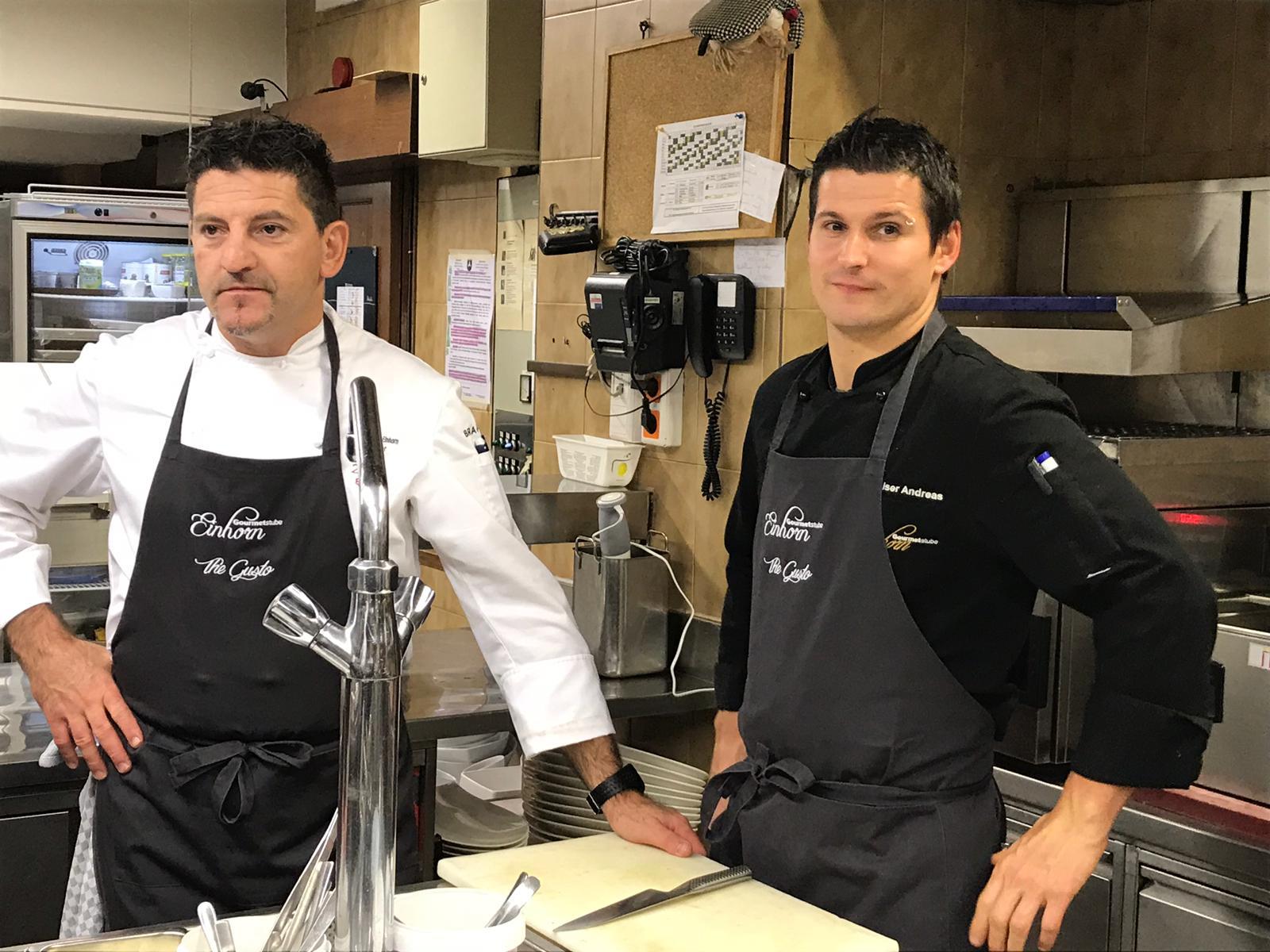 Sterne-Koch Peter Girtler, Sous Chef Andreas Mulser, seinem Küchenteam und Gastkoch Martin Dalsass.